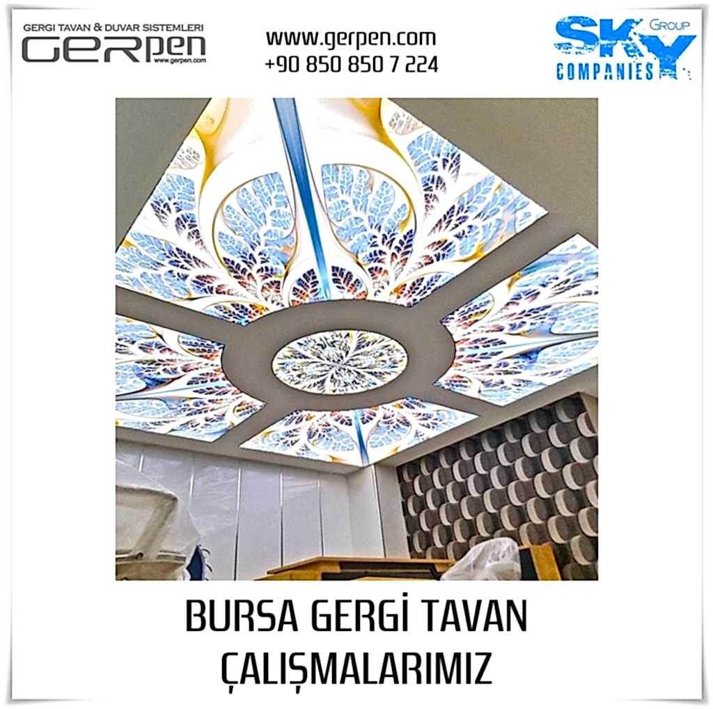 Bursa Gergi Tavan hizmetleri için Sky Group Companies markası olarak GerPen öncelikli olarak ülkemizdeki tüm illerde tüm dekorasyon firmalarına toptan malzeme tedariği ve montaj eğitim hizmetleri vermektedir. Hizmetleri malzemeli, malzemesiz veya anahtar teslim şeklinde sunmaktadır. En önemli faktör Montajdaki işçilik kalitesi ve uygulanan kumaş, şerit led gibi malzeme kalitesi ürün ve hizmette hayati rol oynamaktadır. M2 Metrekare fiyatları için Gergi Tavan Sistemleri sayfamızdan ürün modelleri ni belirleyerek ücretsiz montaj fırsatlarından yararlanarak anlık fiyat alabilir sipariş verebilirsiniz.