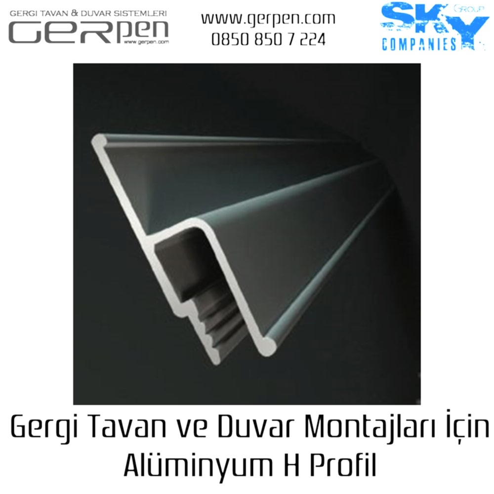 Gergi tavan ve gergi duvar montajları için 1. sınıf kaliteli alüminyum H profil.